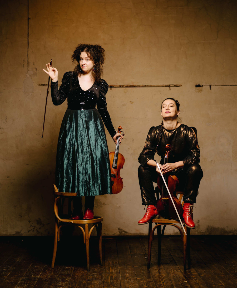 Zwei Bratschen, zwei Stimmen, zwei klassisch ausgebildete Musikerinnen, Interpretinnen, Improvisatorinnen und Komponistinnen, die in keinem Genre häuslich werden, sondern bloß deren Lager plündern, und ehe man sie fassen kann, schon auf dem Weg zu neuen Ufern sind. Musikalische Traditionen werden ebenso erforscht wie frisch drauf los erfunden.